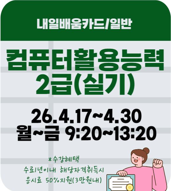 - 전체프로그램 - 국민내일배움카드 - 국비지원교육 - 일반교육 - 이달의 교육프로그램