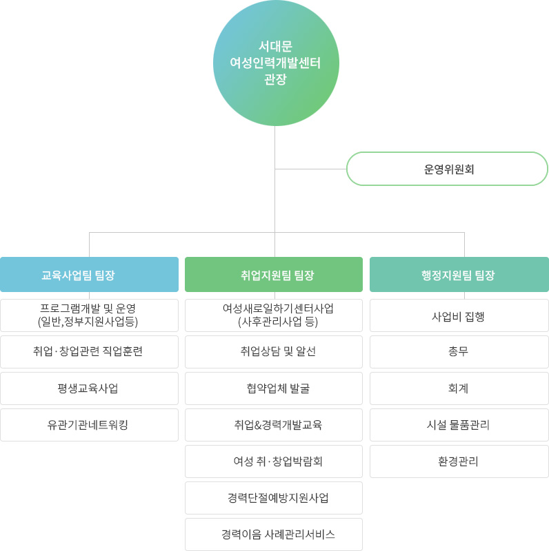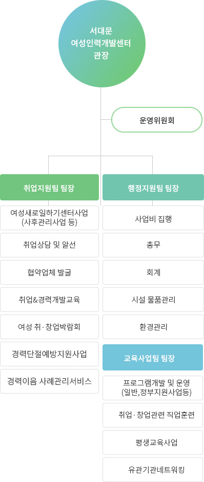 - 여성새로일하기센터란 - 직업교육훈련 - 집단상담프로그램 - 새일여성인턴 - 찾아가는 취업지원서비스 - 경력단절예방지원사업 - 경력이음사례관리